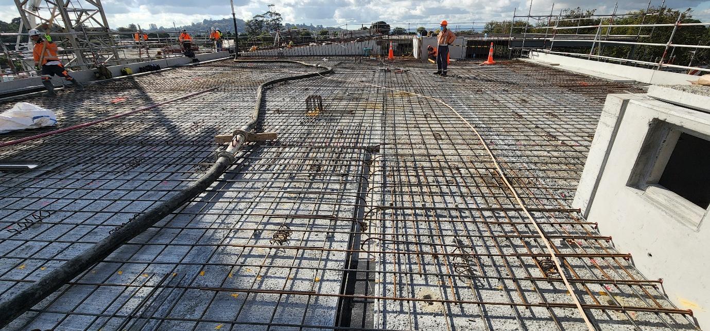 Our concrete team handles repairs, preparation and pouring, slabs, pile caps, capping beams, foundation beams, and full structural concrete work. We also specialise in reinforcing including slabs, pile cages, capping beams, pre cast panel stitches, and shell beam junctions.